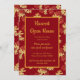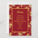 Ernte Open House Einladung, mit roten und goldenen Herbstblättern Akzente. Mit dunkelrotem Hintergrund und Gold, Schrift, können Sie mit Ihren eigenen Informationen anpassen. Mit einem Degustationsmenü auf der Rückseite können Sie Ihren Gästen das Menü, das Sie servieren, mitteilen. Viel Spaß!