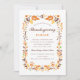 Orange, braun, gelb, eine grüne Touch auf dieser warmen, aber modernen Erntedank-Dinner-Einladung. Der gesamte Text ist anpassbar; editieren Sie ihn zum Anzug Ihrer Veranstaltung (Abendessen, Potluck, Wohltätigkeit, Spendenaktion, etc.).