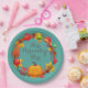 Herbstblätter aus Kürbis, aquamarin orange Pappteller