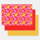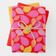 Herbstblätter. Rosa, gelbe, orangefarbene Blätter auf einem hellroten Hintergrund.