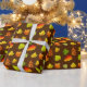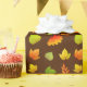Herbstblätter auf dunkelbraunem Verpackungspapier.