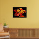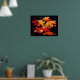 Dieses wunderschöne Poster ist in den Farben Rot, Orange, Gelb und Braun auf schwarzem Hintergrund gehalten.