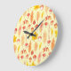 Herbstblätter: Retro-Tapete mit Aquarellfarbe Große Wanduhr