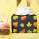 Herbstblätter auf dunkelschwarzem Packpapier.