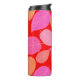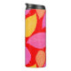 Herbstblätter. Rosa, gelbe, orangefarbene Blätter auf einem hellroten Hintergrund.