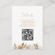 Geben Sie Ihren Gästen alle Details Ihres besonderen Tages mit dieser Umschließungskarte! Die Herbstflorale Struktur, die Website-Informationen und der QR-Code zeichnen sich durch eine delikate Herbst-Blumenordnung aus. Kontaktieren Sie Designer für passende Produkte. Copyright Susan Mingay Koehrn für Susan Mingay Designs, alle Rechte vorbehalten.