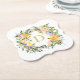 Die Untersetzer der Hochzeitszeitung sind mit einem wunderschönen Blumenkranz versehen, in dessen Mitte das Monogramm des Hochzeitsknechtes in Gold steht. Im Kranz sind die Farben Gold, Mandarine Orange, Zitronengelb und Grün sowie die Touchs Violett und Rot enthalten. Das Bild und das Monogramm werden auf einem eleganten, weißen Hintergrund platziert. Ideal für Hochzeitsfeiern zu jeder Jahreszeit, vor allem im Spätsommer oder Herbst, und leicht zu benutzende Übergänge im Zuhause. Schauen Sie sich die passenden Einladungen und andere Hochzeitsartikel in unserem Shop an.