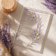 Eine schicke, klassische und elegante Blumenlavendel-Hochzeitswasserfarbe mit Monogramm-Initialen mit lila Lavendelzweigen und Blume, grünem und braunem Blattwerk und eleganter Kalligraphie auf Klaracrylfasern