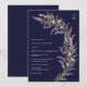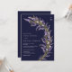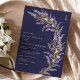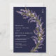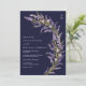 Eine schicke klassische und elegante Blumenlavendel Hochzeitwasserfarbe mit Monogramm-Initialen mit lila Lavendelzweigen und Blume, grünem und braunem Blattwerk und eleganter Kalligraphie auf Marineblau.