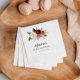 Maßgeschneiderte bedruckte Papierservietten mit einem boho wasserfarbenen Blumenstrauß in rustikalen Herbstfarben. Personalisieren Sie es mit Ihrem Namen und Babydusche Datum oder ändern Sie den Text, um jedes Party oder jede Veranstaltung Anzug. Verwenden Sie die Designwerkzeuge, um die Schriftart und Farben zu bearbeiten oder eigene Fotos hinzuzufügen, um eine Babydusche zu erstellen.