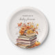 Charmante Babydusche-Teller im Herbst zum Thema Herbst! Auf einem cremefarbenen Hintergrund mit Büchern, die mit herbstlichen Wildblumen geschmückt sind. Außerdem sind sie unglaublich einfach mit dem Namen der Mutter zu personalisieren, was sie zu einer einzigartigen Art macht, Ihre Gäste zu beeindrucken. Bestellen Sie noch heute Ihre und fügen Sie Ihrer Babydusche eine Touch literarischen Charmes hinzu.