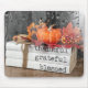 Bücherstapel mit Herbstkürbis und Beeren, die mit einer Kette im regnerischen Fenstereffekt verbunden sind