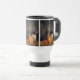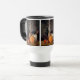 Herbstdekorationen am Tisch, Kürbis, Früchte, Getr Reisebecher