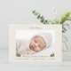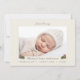 Diese hübsche, geschlechtsneutrale Geburtsankündigung mit Vintagen Eichenholz-Blätter und einem blauen Schmetterling auf der Rückseite mit einem weichen und cremigen Hintergrund. Fügen Sie vier Fotos hinzu und personalisieren Sie einfach mit Babyname, Geburtsdatum, Gewicht und Länge. Personalisieren Sie einfach die Botschaft auf der Rückseite für eine schöne Geburtsankündigung.