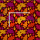 Der Herbst ist in der Luft! Einfache Illustrationen von Eichen-Blätter und Eichen in Herbstfarben von goldgelb, lebhaft orange, magenta und lila vor einem schokoladenbraunen Hintergrund illustrieren diesen Stoff. Mit diesem Material das perfekte Erntedank- oder Herbstprojekt kreieren.