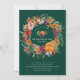 Schönes Herbsternte Kürbiskürbis Kürbiskranz Erntedank Party Einladung Set auf einem tiefen grünen Hintergrund machen die Gestaltungselemente Pop.