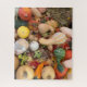 Helle orangefarbene Kürbis, gelb und grün gestreiftes Squash - eine reichhaltige Herbsternte.
