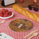 Handgemalte Eichhörnchen und Herbstflora- Blätter; Pilze; Eicheln und Beeren
