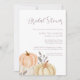 Eine Herbstdusche aus Kürbis Brautdusche. Diese Herbstdusche lädt mit einem einfachen Drei-Kürbis-Design ein. Orange, sanfte Brauntöne und neutrale Erdtöne sind ohne die Konstruktion integriert. Der perfekte Polterabend für ein Brautparty im Herbst.