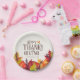 Ansammlung für das Abendessen im Erntedank mit diesem farbenfrohen und fröhlichen Set von Tellern aus Papier. Das Wort "Erntedank" wird in einem lockigen Schriftart nach oben dargestellt. Darunter ist ein Platz für Ihre einzigartigen Jahr- oder Monogramm-Initialen. Unter Ihren Informationen finden Sie eine Reihe von bunten Blätter zum Set der Herbstfarbe. Alle Elemente dieses Gegenstands sind freigeschaltet und können so individuell gestaltet werden, dass Sie sich wie zu Hause fühlen.