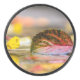 Nachdem der Regen an diesem Morgen im September aufgehört hatte, entschied ich mich, einen Kürbisfarm zu besuchen. Draußen gab es einige Holztische und -bänke, die noch nass vom Regen waren. Ein paar glänzende Blätter lagen auf dem Tisch. Die Sonne fing an, sich durch die Wolken zu erhellen und den Tisch kurz zu beleuchten, sodass diese Herbstfarben schön ausgeschmolzen werden konnten.
