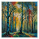 "Ein atemberaubendes digitales Bild eines Waldes im Herbst, das lebendige Herbstfarben in Rot, Orange und Gold zeigt. Das Kunstwerk vereint die ruhige Schönheit der Natur mit faszinierenden Details und einem warmen, einladenden Licht, das perfekt dazu geeignet ist, das Wesen des Herbstes in jeden Raum zu bringen."