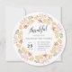 Rustikale Erntedank-Dinner Einladung in einzigartiger Rundform mit einem Kranz aus Herbstblättern, der Ihre Einladungen umgibt. Nutzen Sie diese niedliche rustikal-schicke Einladung zum Erntedank, zum Abendessen, zum Party oder zum "Friendsgiving".