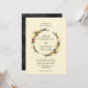 Elegante botanische Hochzeitseinladungen mit atemberaubendem Kranz in einer schicken Farbpalette aus Gelb, Gold, Grau und Schwarz. Ihre Hochzeitsdetails werden elegant auf einem ecru Hintergrund dargestellt. Die Karten werden in ein subtil gemotztes tiefes Aquarellschwarz umkehrt. Hochzeitsfeiern mit Blumen oder Herbst- oder Winterhochzeiten.