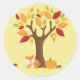 HerbstFox unter Baum mit Kürbis Runder Aufkleber