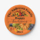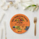 Personalisiertes Erntedank-Papiertafeldesign mit saisonalen Herbstfrüchten, Blume und Blättern auf orangefarbenem Hintergrund. Der Text ist vollständig anpassbar. Um es zu ändern, verwenden Sie die Option Personalize. Weitere Änderungen, z. B. Änderungen am Schriftart, am Schriftart oder am Textlayout, können Sie mit der Option Design bearbeiten durchführen.