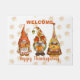 In diesem Design finden Sie den orangefarbenen Text "Happy Thanksgiving" und "Welcome" mit drei niedlichen Gartenzwergen mit Kuchen, Herbstblättern und Kürbissen.
