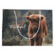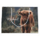 Herbstgras-Foto des Hochlandkalbs. Atemberaubendes junges Kalb von hochschottischen Rindern auf einem Herbstgrasfeld mit abgestuften Farben. Schöner, dunkelhaariger Orangenmantel kontrastiert mit hellgelb grünem Gras und Bäumen im Hintergrund. Individuell personalisierbares Monogramm mit Ihrem Namen und Ihrer Initiale auf dem verlassen.