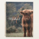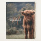 Herbstgras-Foto des Hochlandkalbs. Atemberaubendes junges Kalb von hochschottischen Rindern auf einem Herbstgrasfeld mit abgestuften Farben. Schöner, dunkelhaariger Orangenmantel kontrastiert mit hellgelb grünem Gras und Bäumen im Hintergrund. Individuell personalisierbares Monogramm mit Ihrem Namen und Ihrer Initiale auf dem verlassen.