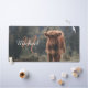 Herbstgras-Foto des Hochlandkalbs. Atemberaubendes junges Kalb von hochschottischen Rindern auf einem Herbstgrasfeld mit abgestuften Farben. Schöner, dunkelhaariger Orangenmantel kontrastiert mit hellgelb grünem Gras und Bäumen im Hintergrund. Individuell personalisierbares Monogramm mit Ihrem Namen und Ihrer Initiale auf dem verlassen.
