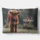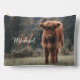 Herbstgras-Foto des Hochlandkalbs. Atemberaubendes junges Kalb von hochschottischen Rindern auf einem Herbstgrasfeld mit abgestuften Farben. Schöner, dunkelhaariger Orangenmantel kontrastiert mit hellgelb grünem Gras und Bäumen im Hintergrund. Individuell personalisierbares Monogramm mit Ihrem Namen und Ihrer Initiale auf dem verlassen.