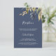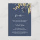 Diese Herbstkarte für die Hochzeitsnacht ist ideal für eine Hochzeit im Herbst. Das moderne rustikale Design zeichnet sich durch marineblau-blaue, sage-grüne und goldene Blätter mit dunkelblauen Blume aus. Personalisieren Sie diese Detail-Gehäuse-Karte mit Ihren Empfang-Informationen und fügen Sie Ihre Website-Adresse Hochzeit auch!