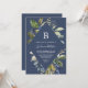 Diese Herbstkarte für eine Hochzeitsreise mit Diamant aus der grünen Wiese ist perfekt für eine Hochzeit im Herbst. Das moderne rustikale Design zeichnet sich durch marineblau-blaue, sage-grüne und goldene Blätter mit dunkelblauen Blume aus.