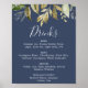 Dieses im Herbst von der Nationalmannschaft für Hochzeitsgetränke geprägte Menü ist perfekt für eine Hochzeit im Herbst. Das moderne rustikale Design zeichnet sich durch marineblau-blaue, sage-grüne und goldene Blätter mit dunkelblauen Blume aus.