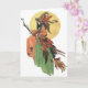 Akrylisches Gemälde einer Herbsthexe mit ihrem Kätzchen, das am Mond vorbeifliegt