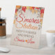 Herbst S'mores Station Hochzeit oder Brautparty Pedestal Sign. Ideal für Ihre S'mores Bar. Mit schönen, hellen Herbstlauben auf einem gewaschenen Holzboden. Ein Teil unseres Rückgangs in der Liebe Sammlung.