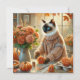 Feiern Sie die Schönheit des Herbstes mit dieser bezaubernden Illustration einer braunen Tischkatze, umgeben von pulsierenden Herbstfällen-Blume. Dieses digitale Kunstwerk in Orange-, Rot- und Gelbtönen erinnert an einen gemütlichen, Vintagen Stil der Volkskunst. Ideal für Herbstliebhaber, Katzenliebhaber oder alle, die eine Touch von Wärme und Natur in ihre saisonale Dekoration einbauen möchten.