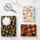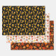 Diese Kollektion von Packpapier-Bogen zeigt drei herbstliche Themenmuster - Zuckermaissmuster auf schwarz - Typografie "I Liebe fall" zwischen Ahorn, Eiche, Kastanienmuster - Ahorn-Blätter und Kürbissmuster auf schwarz - von katz_d_zynes