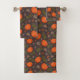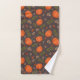 Herbstkürbis, Eichhörnchen und Blätter auf dunkelbraunem Hintergrund. Große Herbst- und Erntedank-Zuhause-Dekoration.