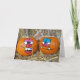 Paar orangefarbene Herbstkürbis mit gemalten lustigen Gesichtern zum Hochzeitstag