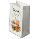 Geschenktüte mit einem fallbezogenen Thema Bild. Orangefarbene und weiße Kürbisse, umgeben von Herbstlauben und orangefarbenen Blume.