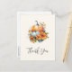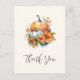 Vielen Dank Postcard mit einem fallspezifischen Bild. Orangefarbene und weiße Kürbisse, umgeben von Herbstlauben und orangefarbenen Blume.