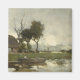 Dieses Design zeigt ein Gemälde des niederländischen Künstlers Jan Hendrik Weißenbruch (1824-1903), der zur Haager Kunstschule gehörte und eine traditionelle Landschaft in den Niederlanden zeigt. Es gibt einen Fluss mit einem Holzboot, umgeben von Landflächen. Eine kleine Hütte mit Strohdächern ist umgeben von einigen Bäumen, unter einem grauen, bewölkten Himmel. Das Originalgemälde wurde im späten 19. Jahrhundert hergestellt und befindet sich heute im Rijksmuseum, Amsterdam.