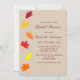 Herbstlaube Brautdusche Einladung. Herbsteiche und Ahorn-Blätter vor rustikalem, hellbraunem Hintergrund