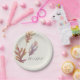 Geschaffen, um mit Dank" Sammlung Lea Delaveris Entwurfs "geben Sie, festliches buntes fallendes Blätter der Eigenschaften dieser Erntedankplatte zu koordinieren zusammen mit dem "dankbaren" Wort in der modernen Kalligraphie. Die Farben sind Saisonschatten der tiefen Pflaumen und der Purpur und gebrannte Orangen auf einem elfenbeinfarbenen Hintergrund. Funktioniert auch gut für ein Fallbaby oder -Polterabend, Büro potluck, Friendsgiving oder ein Probenabendessen.