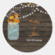 Rustikales Barnwood, verwinkelte Saitenleuchten mit Herbstlauben in einem Kaugummi Gastgeschenk Hochzeit Aufkleber und Umschlag Aufkleber. Auch passende Produkte erhältlich